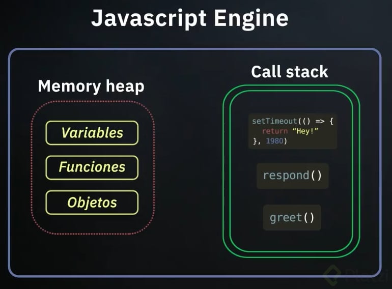 Antes de entrar en el funcionamiento síncrono y asíncrono, es esencial entender dos componentes clave del JavaScript Engine: