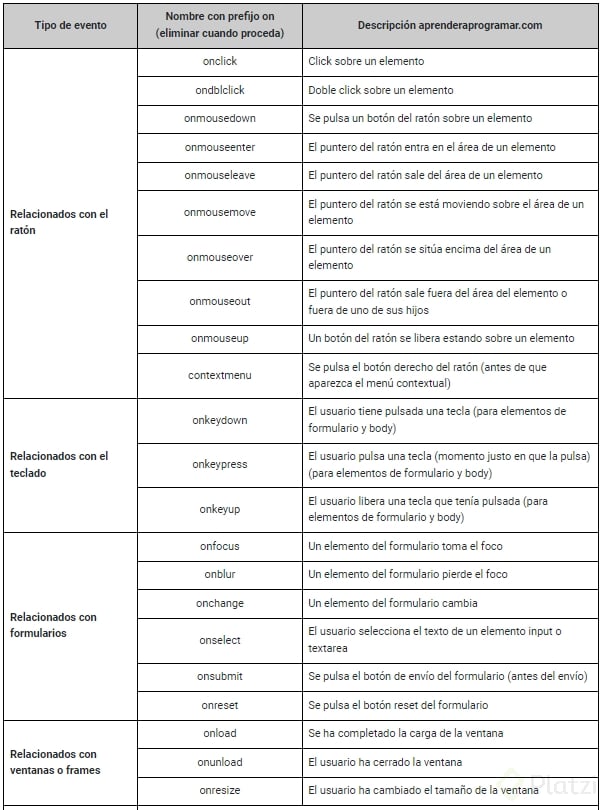 - Eventos en formularios: como entrada de datos y envío del formulario.