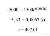 3. El número de personas que viven en un pueblo es de 10000. Si después de una década hay 20000 personas. Calcule cuántas personas habrá a los 15 años (partiendo desde el inicio), y en qué momento se llegará a los 50000 habitantes.