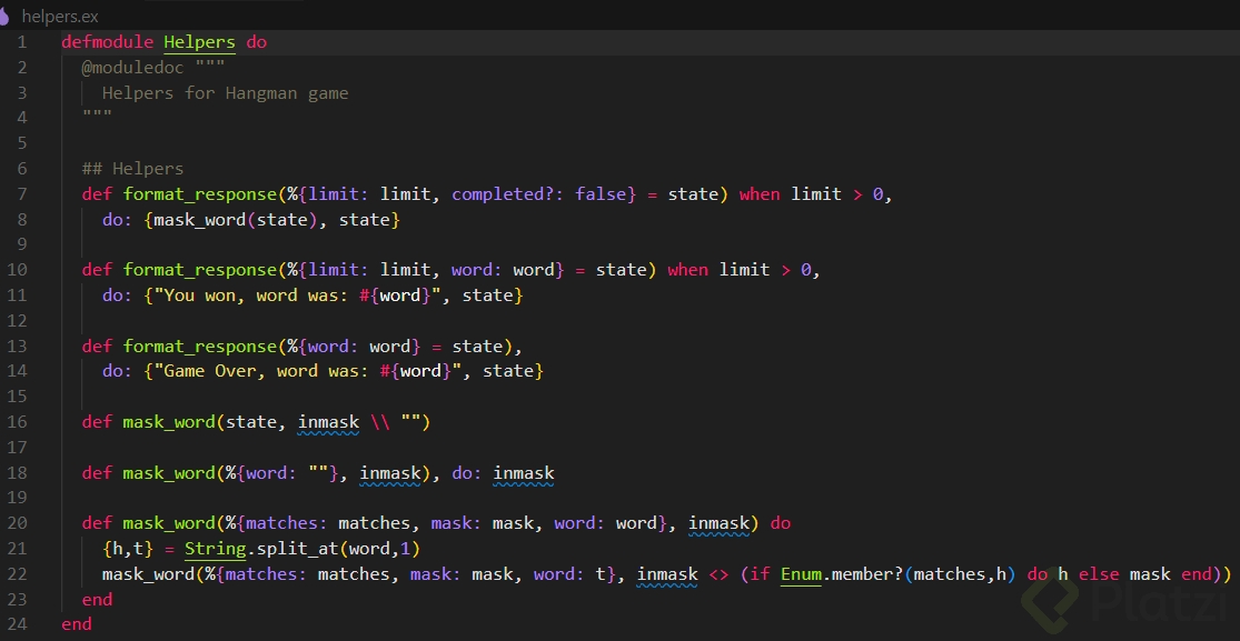 • La función mask_word/1 la coloqué en helpers.ex, asi: