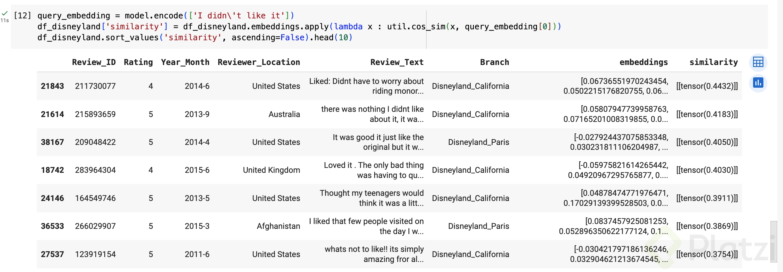 df_avatar['Similarity'] = df_avatar.embeddings.apply( lambda x: utils.cossim(x, query_embedding[0]) )En este paso, 'utils.cossim' calcula la similitud entre los embeddings del dataset y nuestro 'query_embedding'.