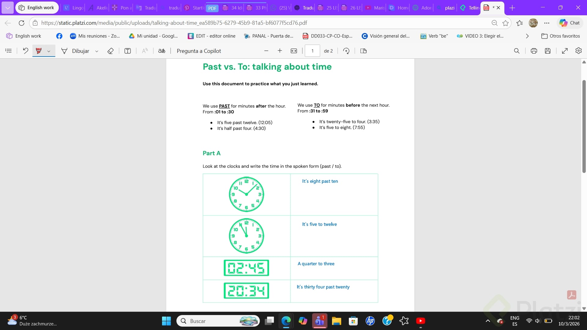 - Download the worksheet in the research section. Add the spoken time to each clock. Share a screenshot of your activity in the comments.
