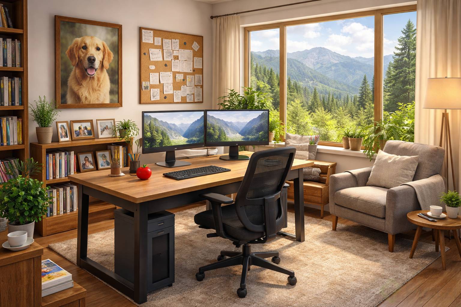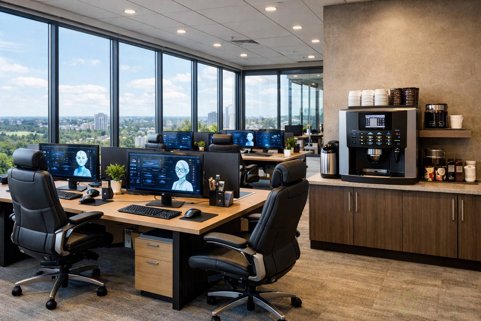 Key nouns: remote workers, ergonomic chairs, monitors, workstation.