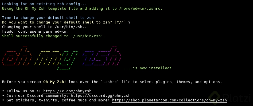 sudo apt installpara instalar paquetes descargados - Configuración de shells avanzadas: Instalación y configuración de ZSH como shell alternativa a bash