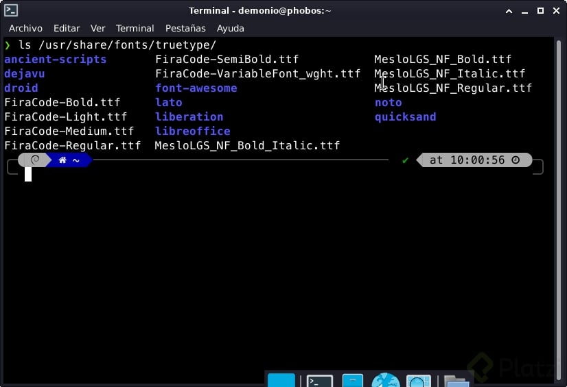 - Fuentes instaladas: 4 variantes de Meslo Nerd Font
