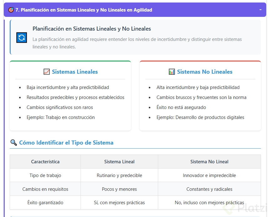 Planificación en Sistemas Lineales y No Lineales en Agilidad