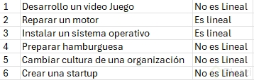 - Tipo de trabajo: Si el trabajo es rutinario y los resultados son predecibles, es probablemente lineal.
