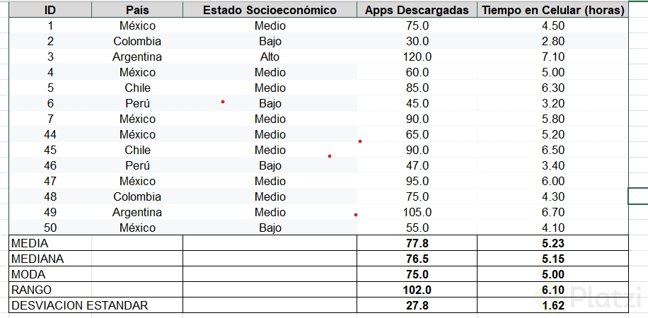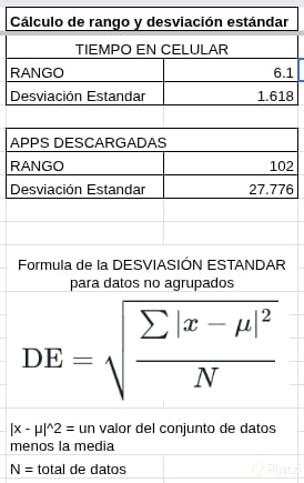 El rango es una medida sencilla que indica la diferencia entre el valor máximo y el mínimo dentro de un conjunto de datos. Es especialmente útil para entender la amplitud total de una variable, siempre que excluyamos los valores atípicos que podrían distorsionar nuestra percepción. Por ejemplo, si hablamos de tiempo, arroja cuántas horas separan al usuario que más utiliza el móvil del que menos lo hace.