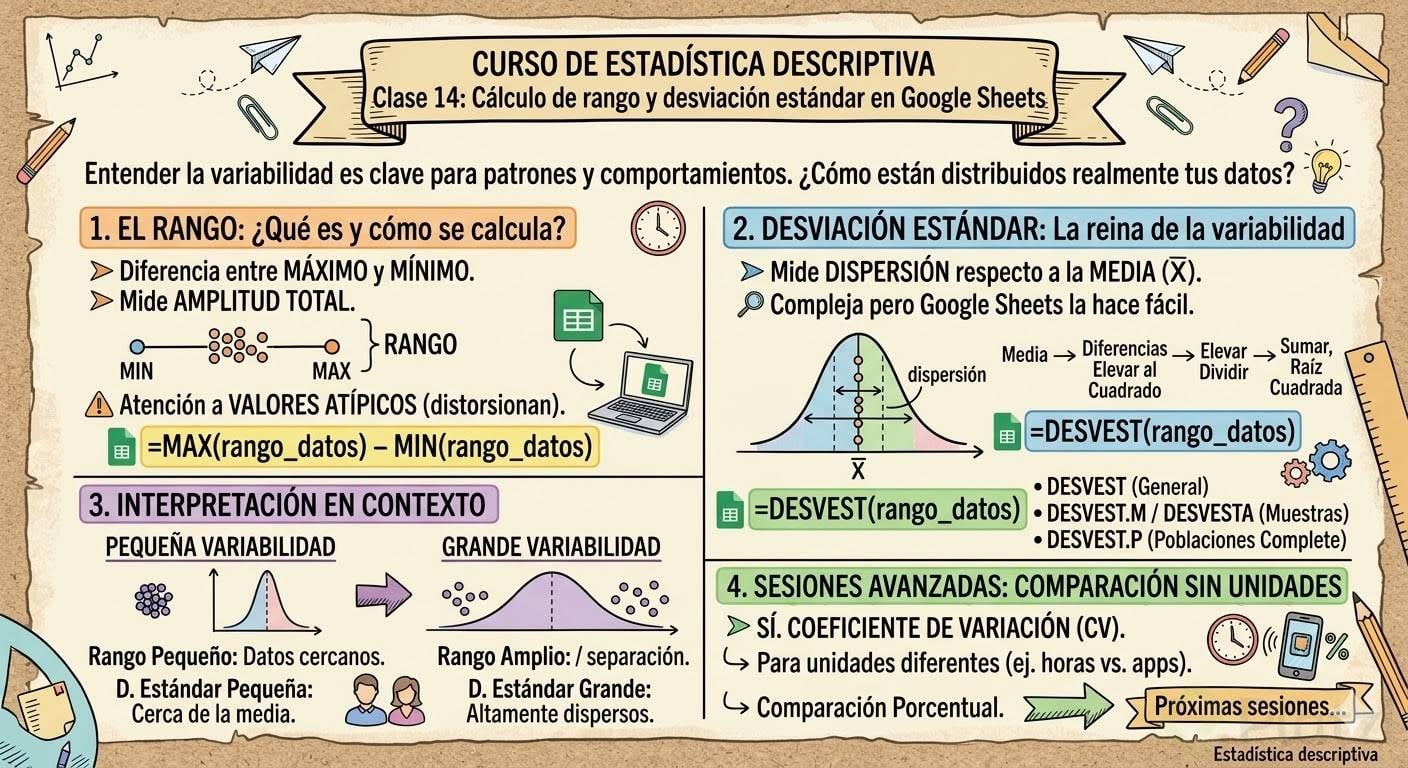 ¿Alguna vez has querido saber cómo están distribuidos realmente tus datos? Conocer su variabilidad es clave para entender patrones y comportamientos específicos. Justamente, el rango y la desviación estándar nos permiten responder con claridad y eficiencia preguntas sobre qué tanto varían nuestros datos respecto a una media.