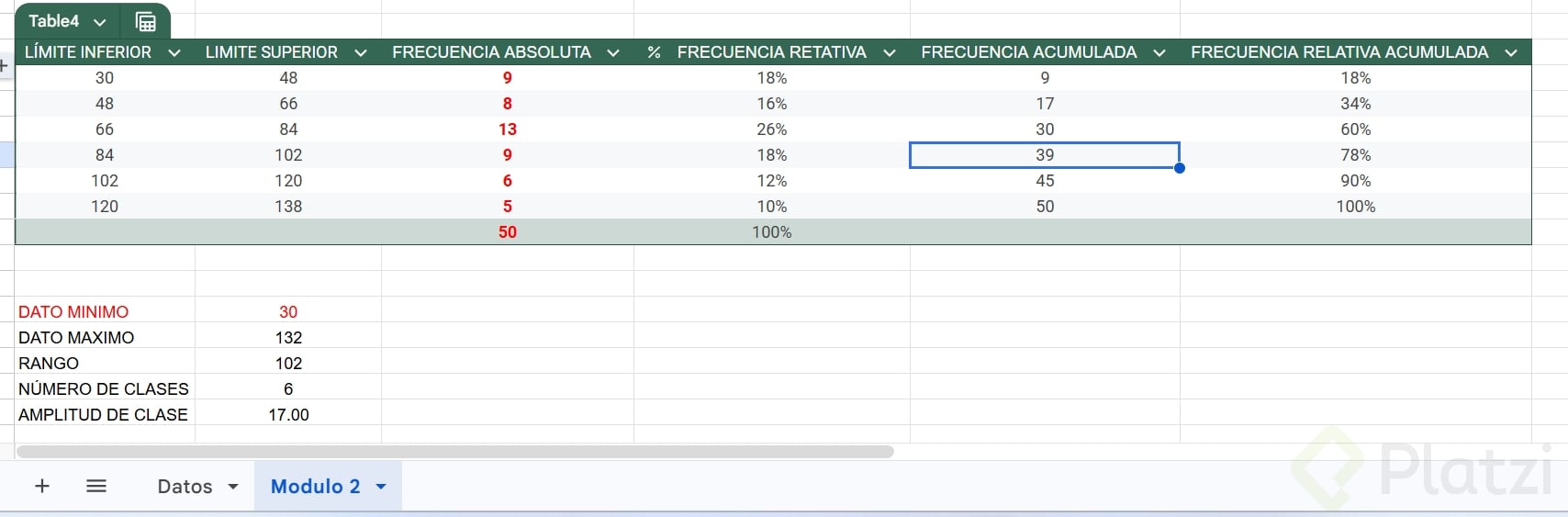 Calcula el rango: resta el dato mínimo del máximo para saber la distribución total.