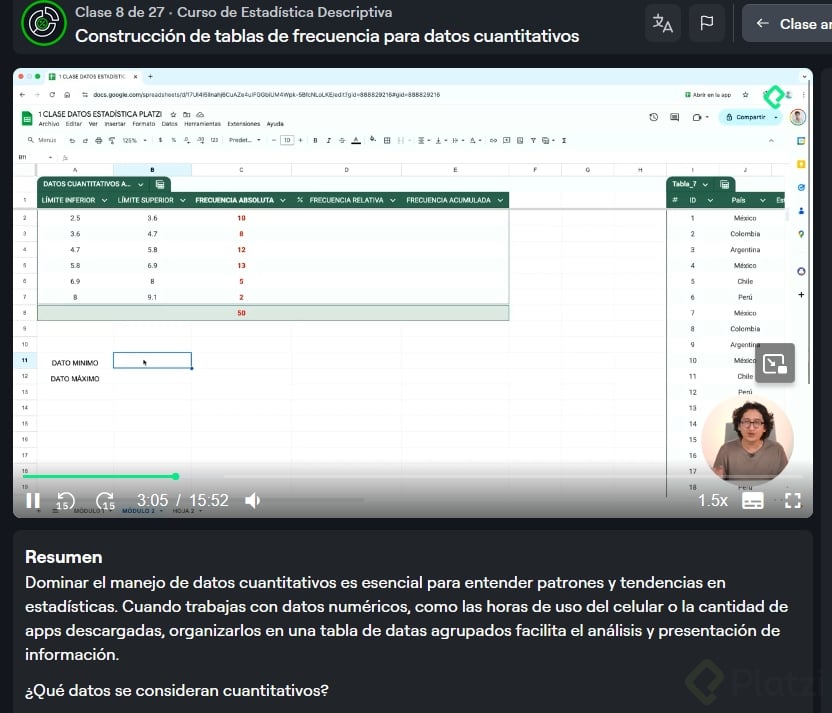 Ahora estás listo para aplicar estos conocimientos con tus propios datos cuantitativos discretos o continuos. ¡Anímate a crear tablas eficientes para tus análisis estadísticos! ¿Qué te resultó más interesante o desafiante? Comenta tus experiencias o dudas.