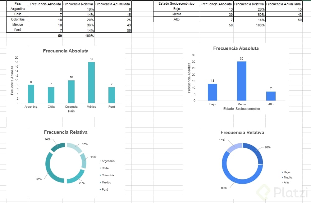 El gráfico de barras es ideal para representar frecuencias absolutas, especialmente al utilizar variables ordinales como estado socioeconómico (bajo, medio, alto). Sigue estos pasos: