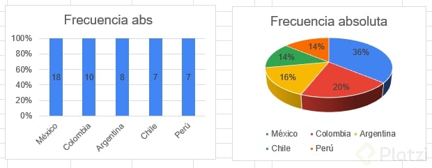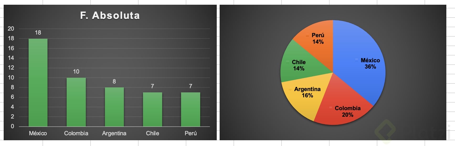 - Saber que los gráficos de barras suelen usarse con frecuencias absolutas y los gráficos de pastel, con relativas.