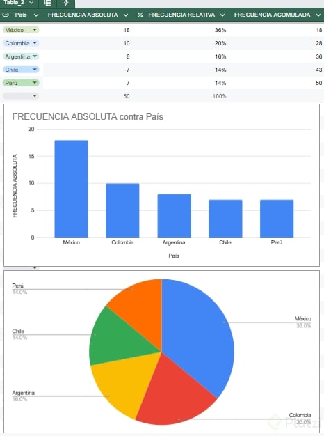 Las gráficas son herramientas visuales esenciales para representar claramente la información. En esta guía práctica aprenderás, utilizando Google Sheets, cómo crear rápidamente gráficas de barras y gráfico de pastel con tus datos. Esto facilitará considerablemente la interpretación y presentación de cualquier tabla de frecuencias obtenida previamente.