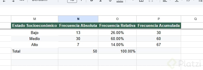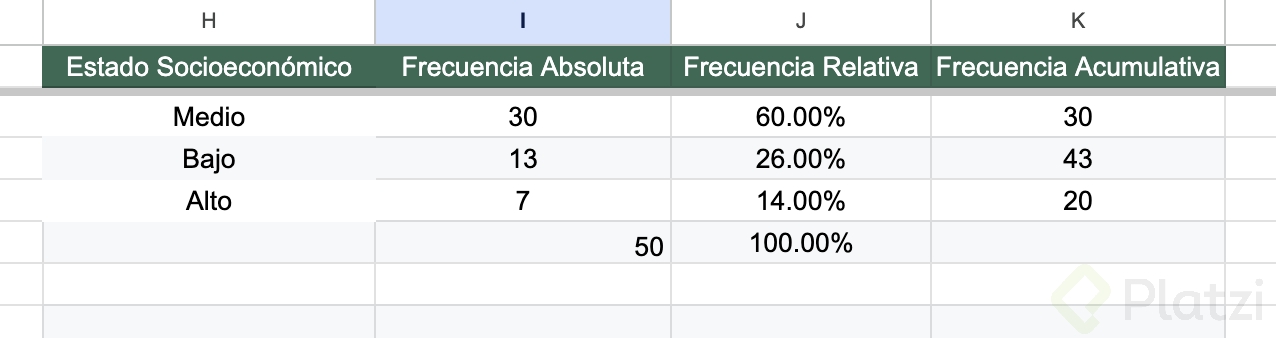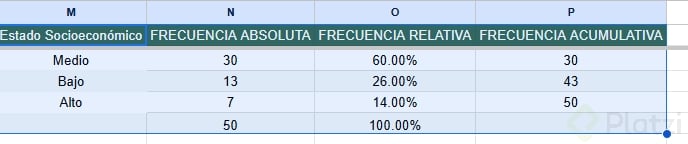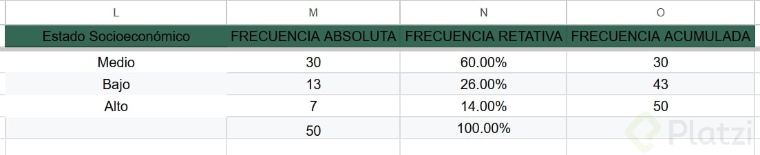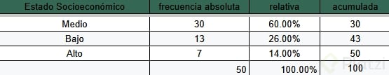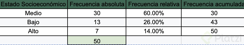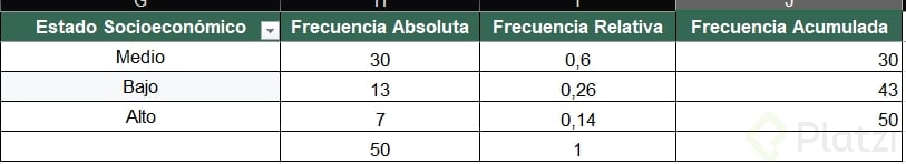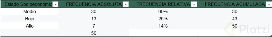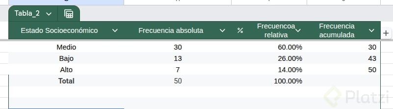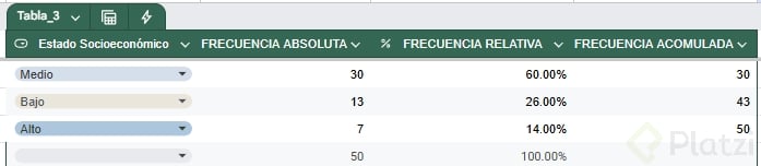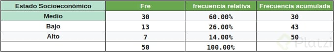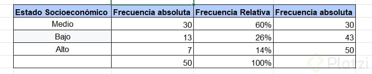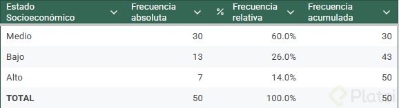 Pon en práctica lo aprendido realizando tu propia tabla de frecuencia sobre el estado socioeconómico: