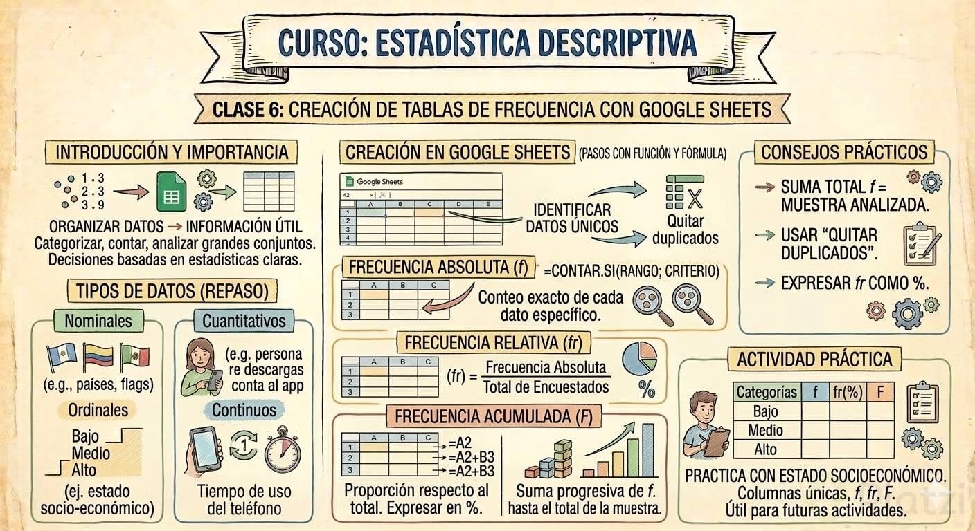 ¿Quieres aprender a organizar datos para obtener información útil? Crear tablas de frecuencia con Google Sheets es fundamental para interpretar claramente datos cuantitativos y cualitativos. Este recurso, sencillo y práctico, permite categorizar, contar y analizar grandes conjuntos de datos, facilitando la toma de decisiones basadas en estadísticas claras.