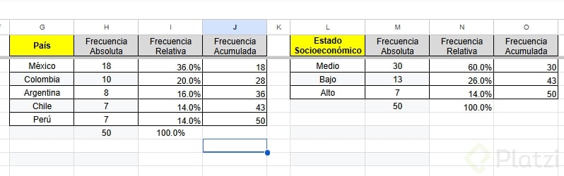 ¿Cómo crear una tabla de frecuencia en Google Sheets?