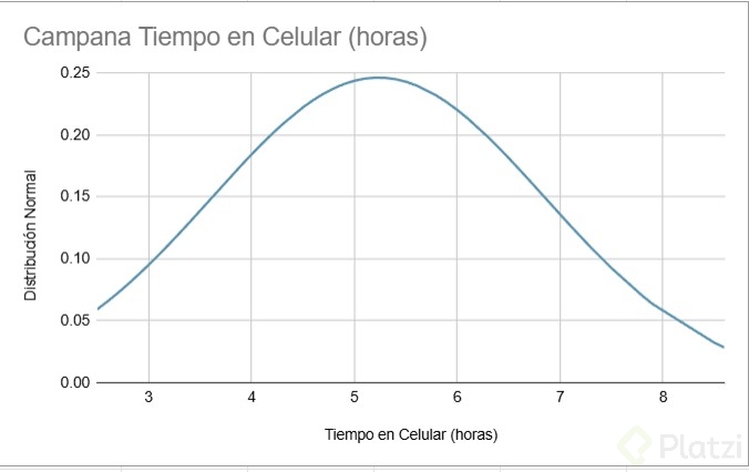- El punto más alto de la campana corresponde aproximadamente a la media de nuestros datos