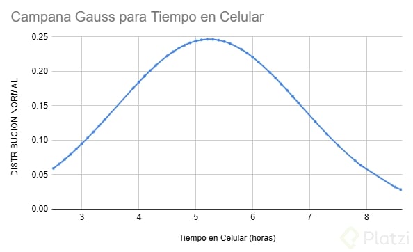 El punto más alto de la campana corresponde aproximadamente a la media de nuestros datos