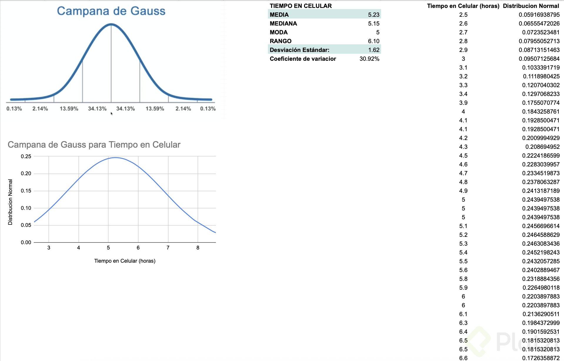 Para crear una campana de Gauss con datos reales, necesitamos calcular la distribución normal de cada valor en nuestro conjunto. Aunque hacerlo manualmente sería complejo, podemos utilizar herramientas como Google Sheets para simplificar el proceso.