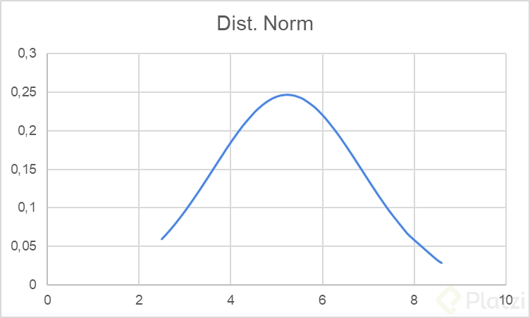 =DISTR.NORM(x, media, desv_estándar, FALSO)