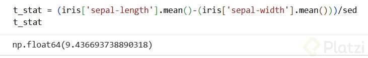 tstat = (iris["sepal_length"].mean() - iris["sepal_width"].mean()) / set_sd