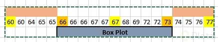 Primer Cuartil (Q1): Promedio del 3° y 4° valor: (64 + 65) / 2 = 64.5
