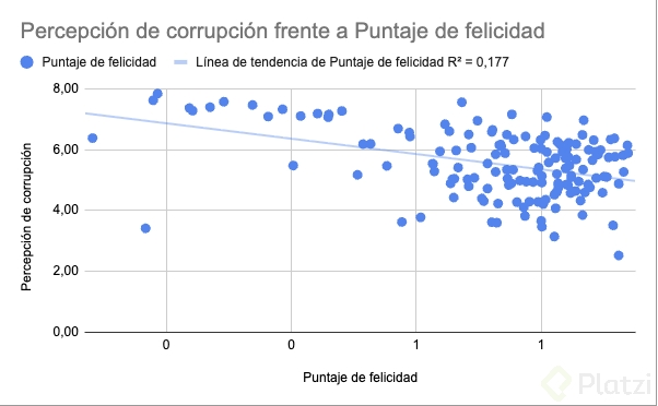 Fuerza: Determina qué tan cerca están los puntos de una línea imaginaria de tendencia. Si los puntos están muy cerca de esta línea, la relación es fuerte. Una dispersión amplia de los puntos indica una relación débil.