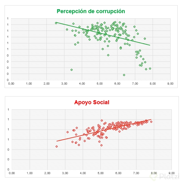 - La dirección en que se dirigen, indicando si existe una relación positiva o negativa.