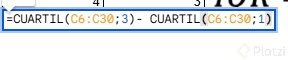 Índice intercuartílico = QUARTILE(datos, 3) - QUARTILE(datos, 1)