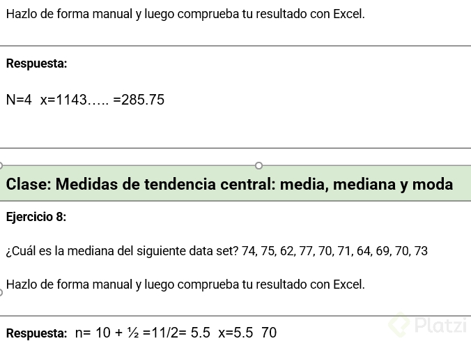 ¿Te imaginas calcular media, mediana y moda manualmente para cientos de datos? Sería bastante tedioso. Por eso, en nuestras próximas clases, aprenderemos a utilizar herramientas como Excel o Google Sheets, que simplifican y automatizan estos cálculos. Recuerda que la práctica y la comprensión de estos conceptos serán esenciales para dominar el análisis de datos. ¡No te desanimes, sigue aprendiendo y explorando! Tu esfuerzo dará frutos.