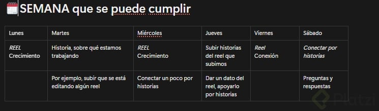 El reto es concreto: en tu documento de estrategia personal, diseña una semana tipo posible, no perfecta. Asigna la intención de cada contenido sin poner fechas ni formatos todavía.
