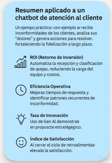 El éxito de un proyecto de Gen AI no depende únicamente de su ejecución técnica, sino de la capacidad para demostrar su impacto tangible en la organización. Sin una narrativa clara que evidencie mejoras concretas, los proyectos tienden a perder apoyo interno y recursos. Estas cuatro métricas clave te ayudarán a medir y comunicar el verdadero valor de tu iniciativa.