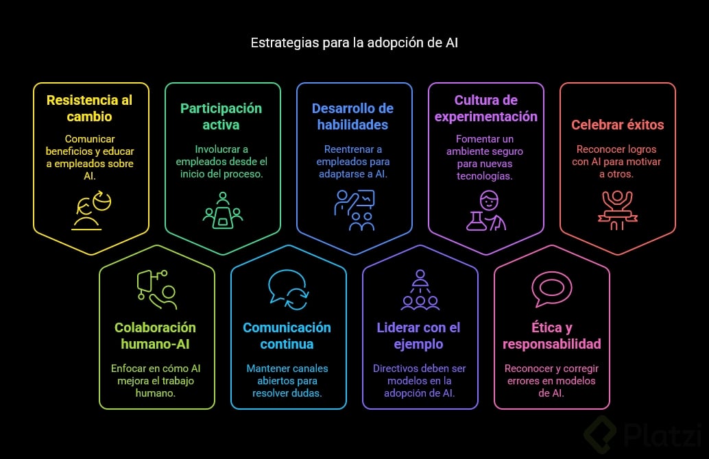 - Cultura de experimentación: Crear entornos seguros donde los empleados puedan probar herramientas sin temor a errores.