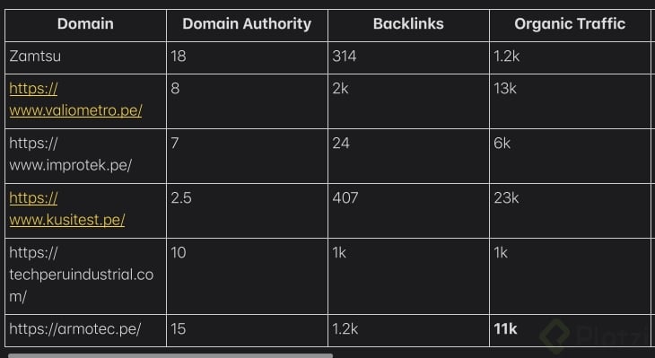 - Enlaces entrantes (Backlinks): Un alto número de backlinks denota un buen posicionamiento en búsqueda. Evalúa cuántos backlinks poseen tus competidores y compara con tu propia página.