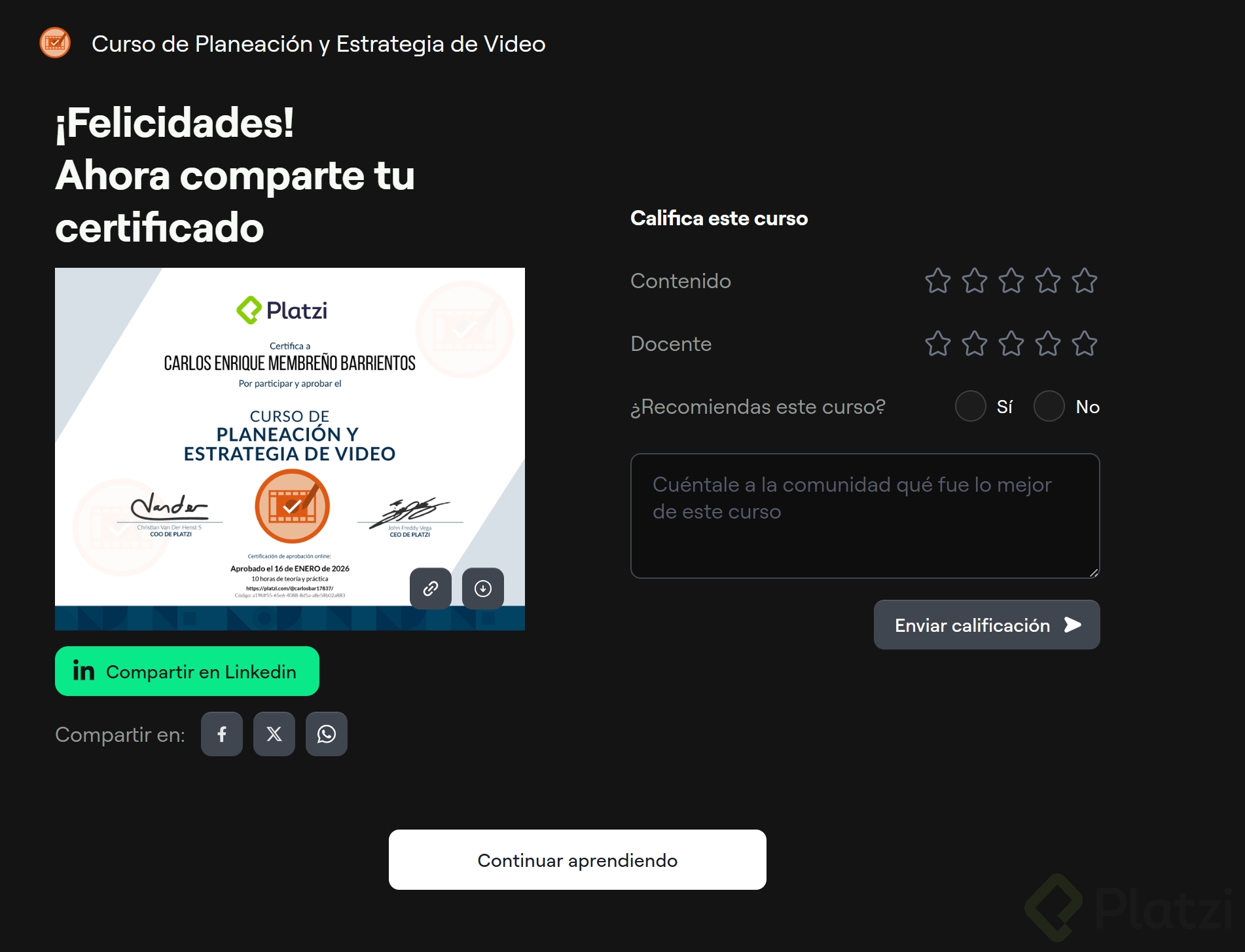 Si empezaste a ver este curso seguro es porque te interesa aprender y optimizar tus procesos en digital, llenarte de ideas para hacer campañas de video increíbles y empezar a ganar dinero con tus creaciones en plataformas digitales. ¡Nosotros también queremos que hagas todo esto!