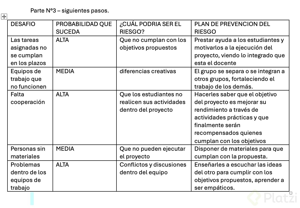 - ¿Cual podría ser un plan para prevenir ese riesgo?