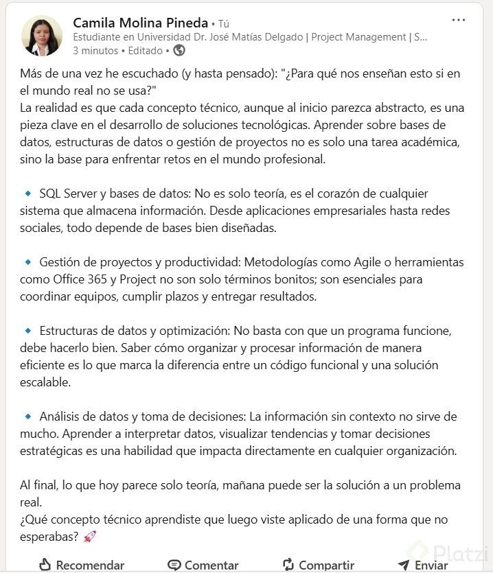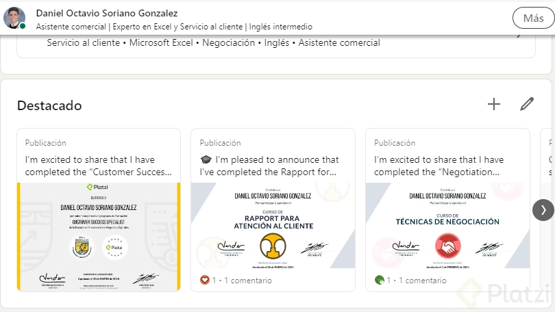 Evita sobrecargar esta sección con contenido irrelevante. Solo selecciona aquellos elementos que realmente destaquen tu trayectoria y aporten a una percepción positiva de tu perfil.
