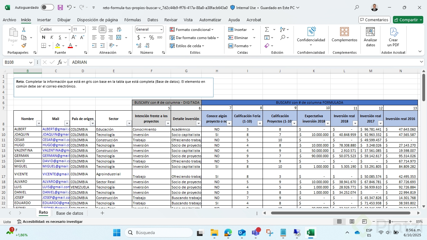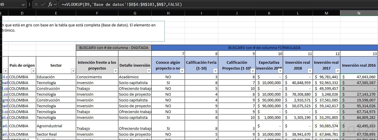 Uso avanzado de la función BUSCARV en Excel para bases de datos.
