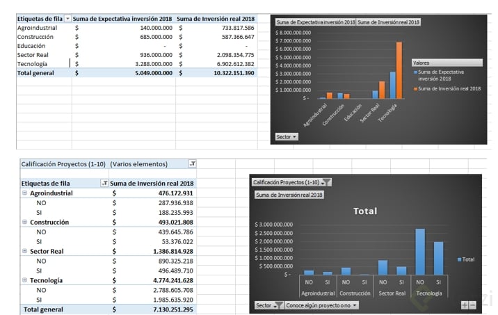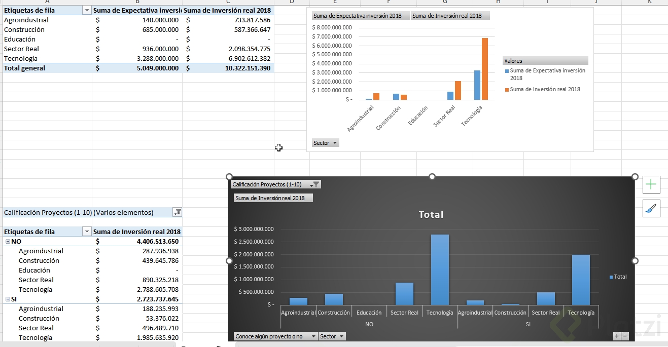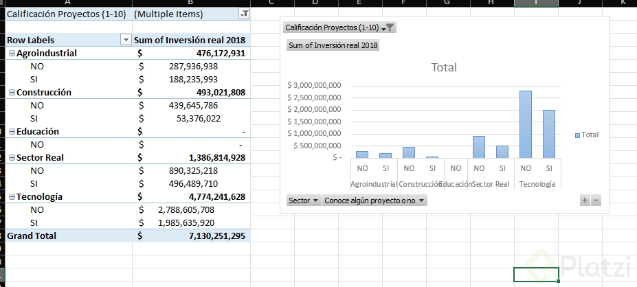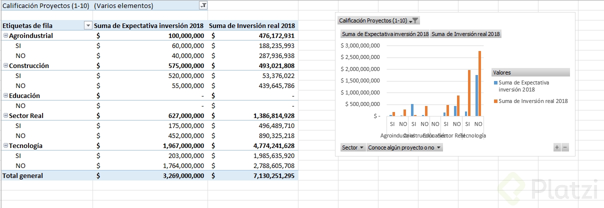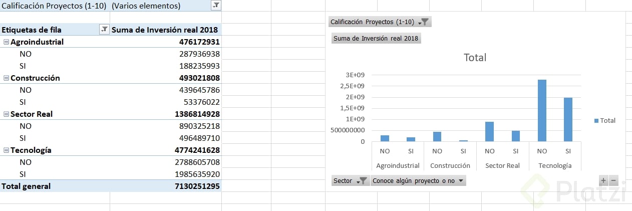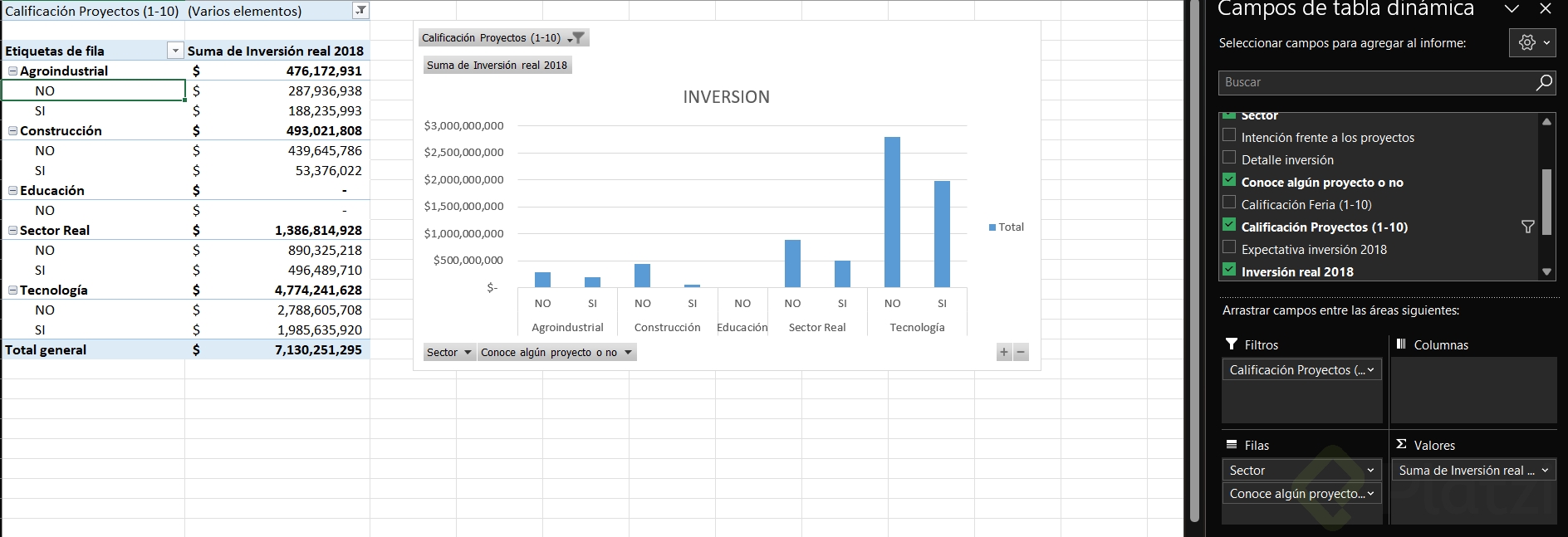 - Si deseas priorizar el conocimiento del sector antes que otra categoría, modifica el orden de las filas en la tabla dinámica.
