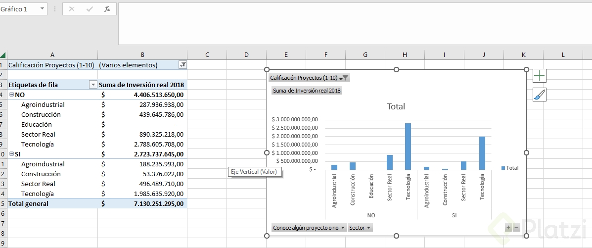 Así, puedes explorar diferentes posibilidades y hacer ajustes en tiempo real hasta encontrar la representación gráfica que mejor se adapte a tus necesidades. Experimenta con estas configuraciones, practica realizando retos y prepara el terreno para el aprendizaje continuo de nuevas técnicas de tablas dinámicas. ¡Continúa tu aprendizaje y conviértete en un experto en el uso de Excel!