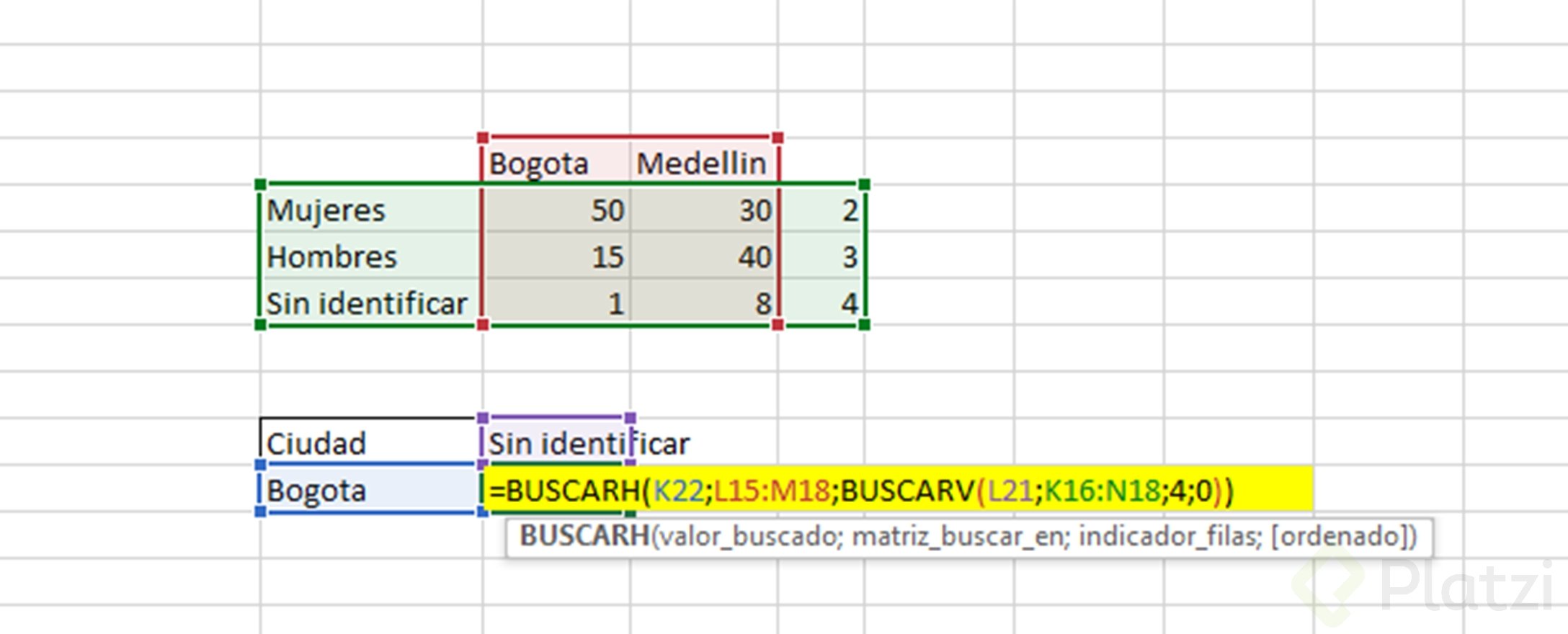 - Matriz: Selecciona la tabla desde la primera fila, ya que aquí vamos a buscar.