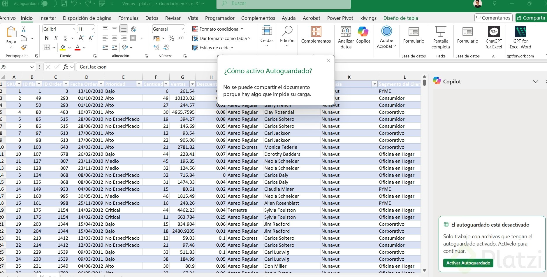 Para empezar, solo se necesita: - Abrir el archivo de Excel correspondiente. - Activar la función de "autoguardado". - Dirigirte hacia la opción "Copilot", generalmente ubicada en la parte superior derecha.
