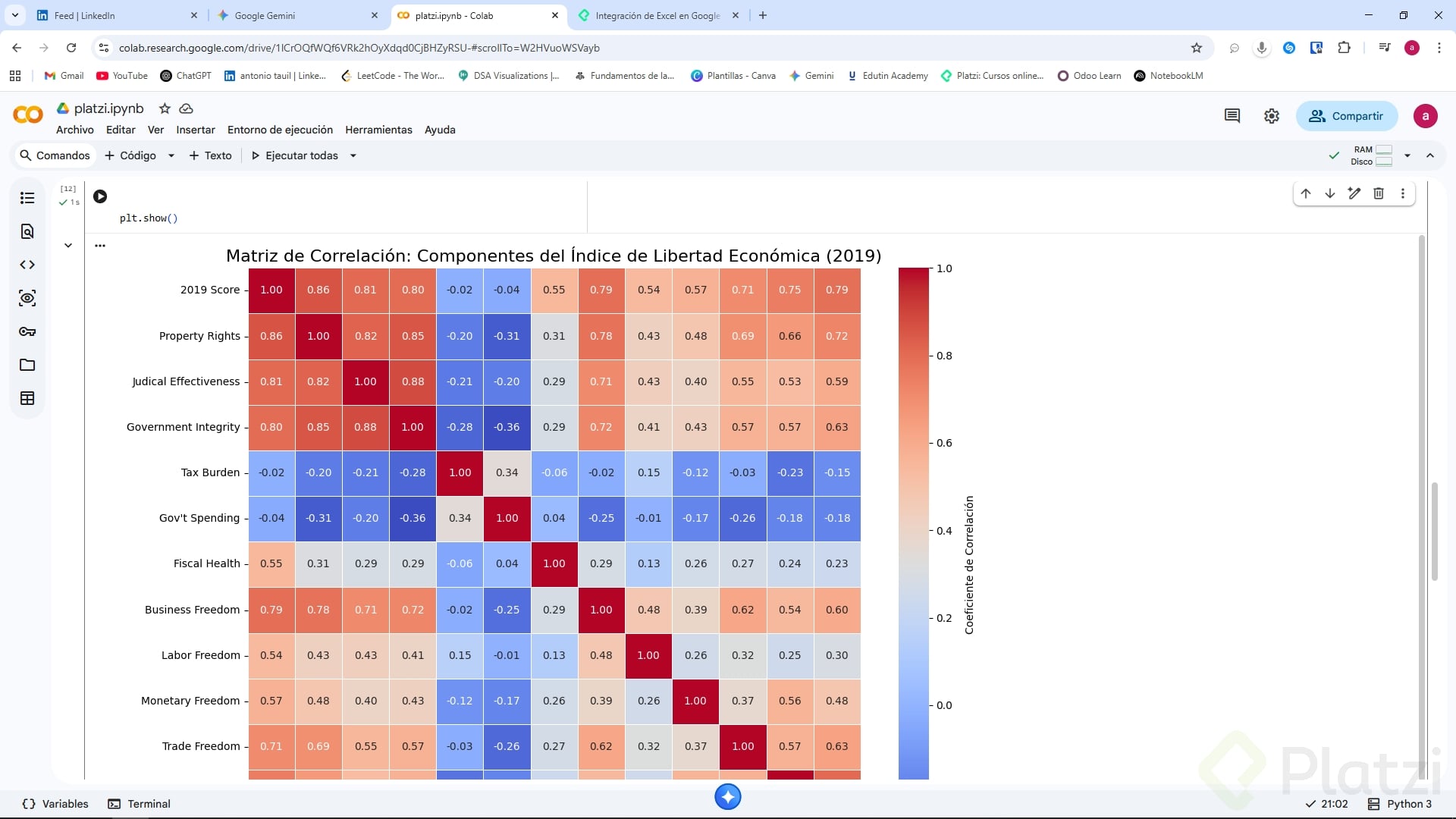 ¿Has probado integrar Excel con Google Colab para tus análisis de datos? Te invitamos a experimentar con Gemini para crear visualizaciones avanzadas utilizando Python a partir de datasets como el Economic Freedom Index y compartir tus resultados en la sección de comentarios.