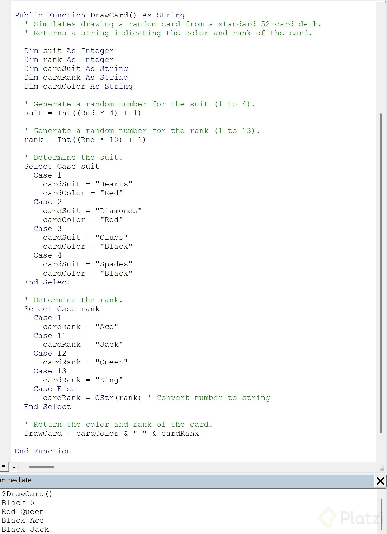 Refuerza tu comprensión repitiendo este ejercicio con otro conjunto de reglas. Por ejemplo, puedes usar cartas de un mazo para determinar si son de color rojo o negro. Expande tu programa para incluir detalles como el palo (corazones, diamantes, tréboles, picas) y experimenta creando complejidades adicionales en el código. ¡Este enfoque aprender-haciendo ofrecerá una práctica valiosa y te hará más competente en el uso de IF-THEN y en la programación en general!