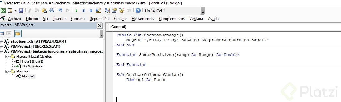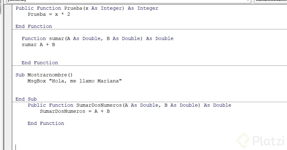 Sintaxis de Funciones y Subrutinas en Visual Basic