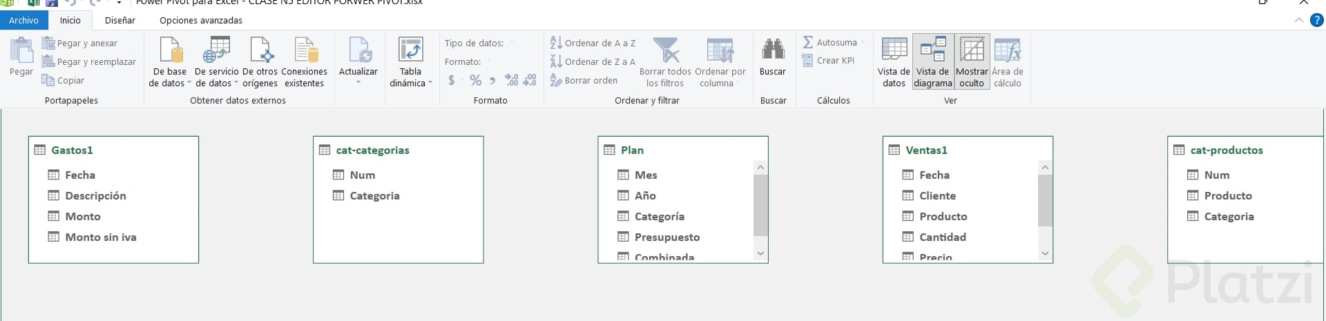 Si no ves Power Pivot en la cinta, actívalo desde los complementos.