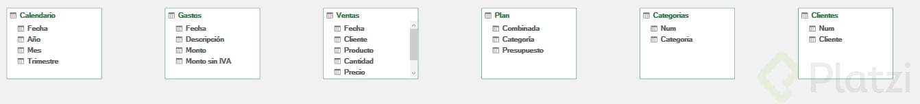 - Ejemplo típico: gastos conectados a una tabla de descripción. Ventas conectadas a clientes y productos.
