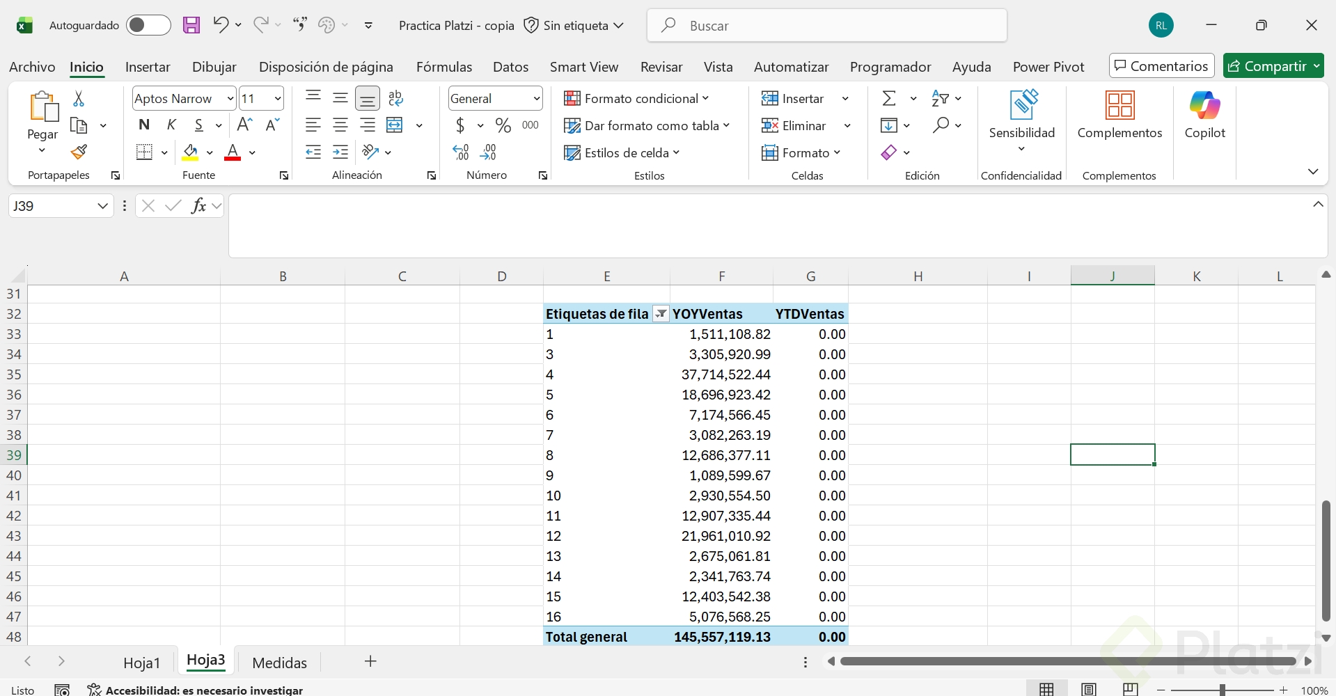 - Cierra y aplica para reflejar el cambio en Power Pivot y que YTD deje de estar en blanco.