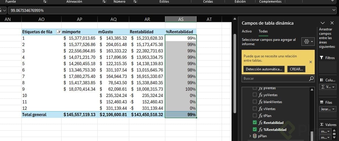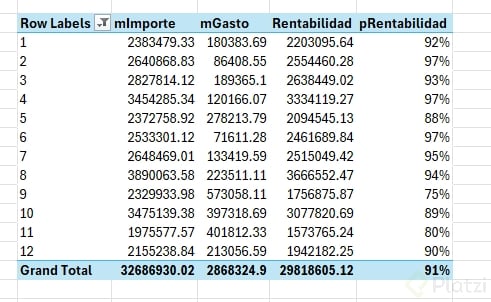Práctica propuesta: genera la rentabilidad en porcentaje creando una nueva medida que divida y formatea el resultado como %.
